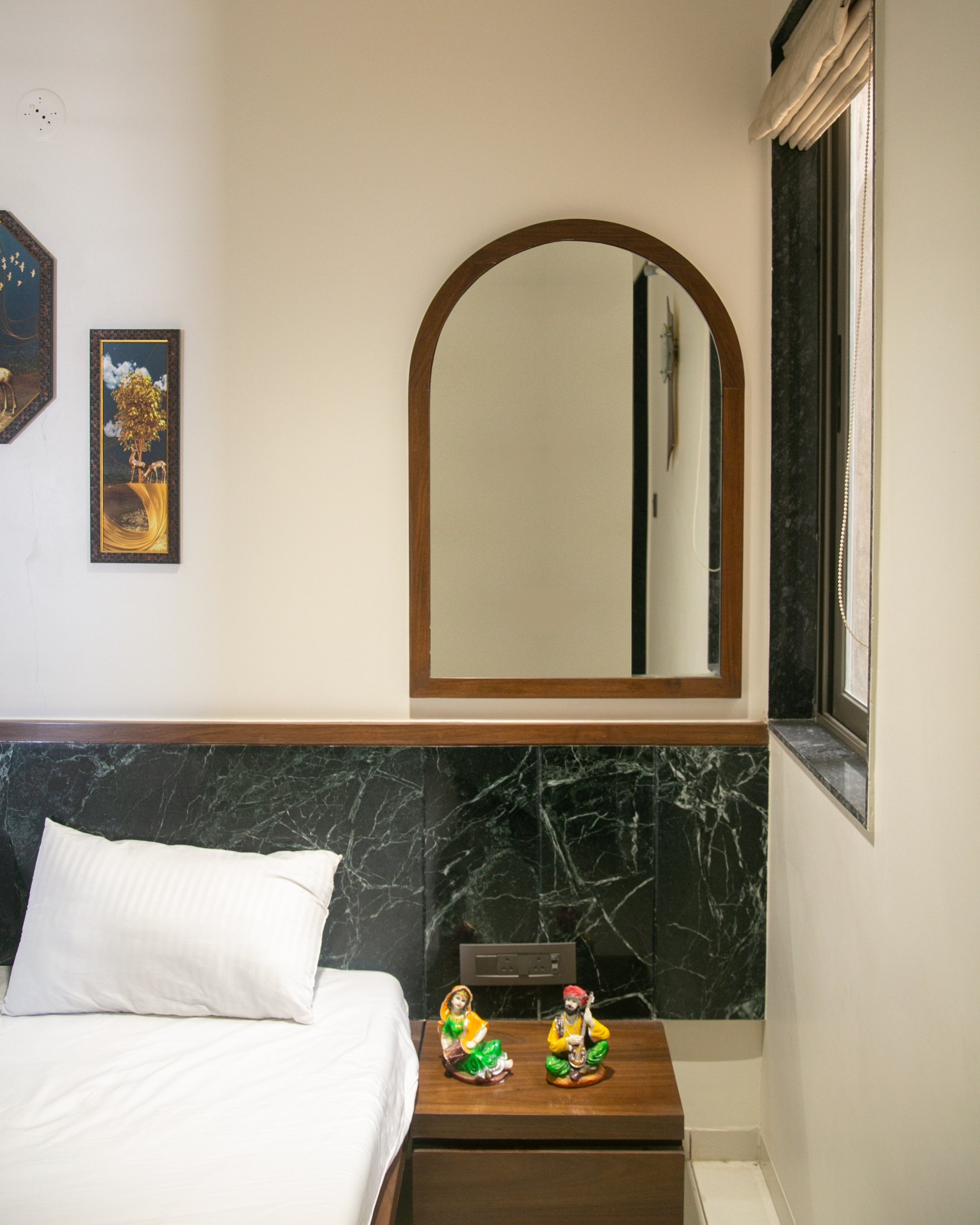 Residence RKA is a thoughtfully crafted 1180 sq ft home where refined details and a harmonious material palette create a distinctive living experience. The design celebrates the timeless beauty of marble, which lends a sense of sophistication to the interiors, while warm wooden elements add depth and comfort. Every corner has been meticulously detailed to enhance functionality while maintaining a seamless visual flow.