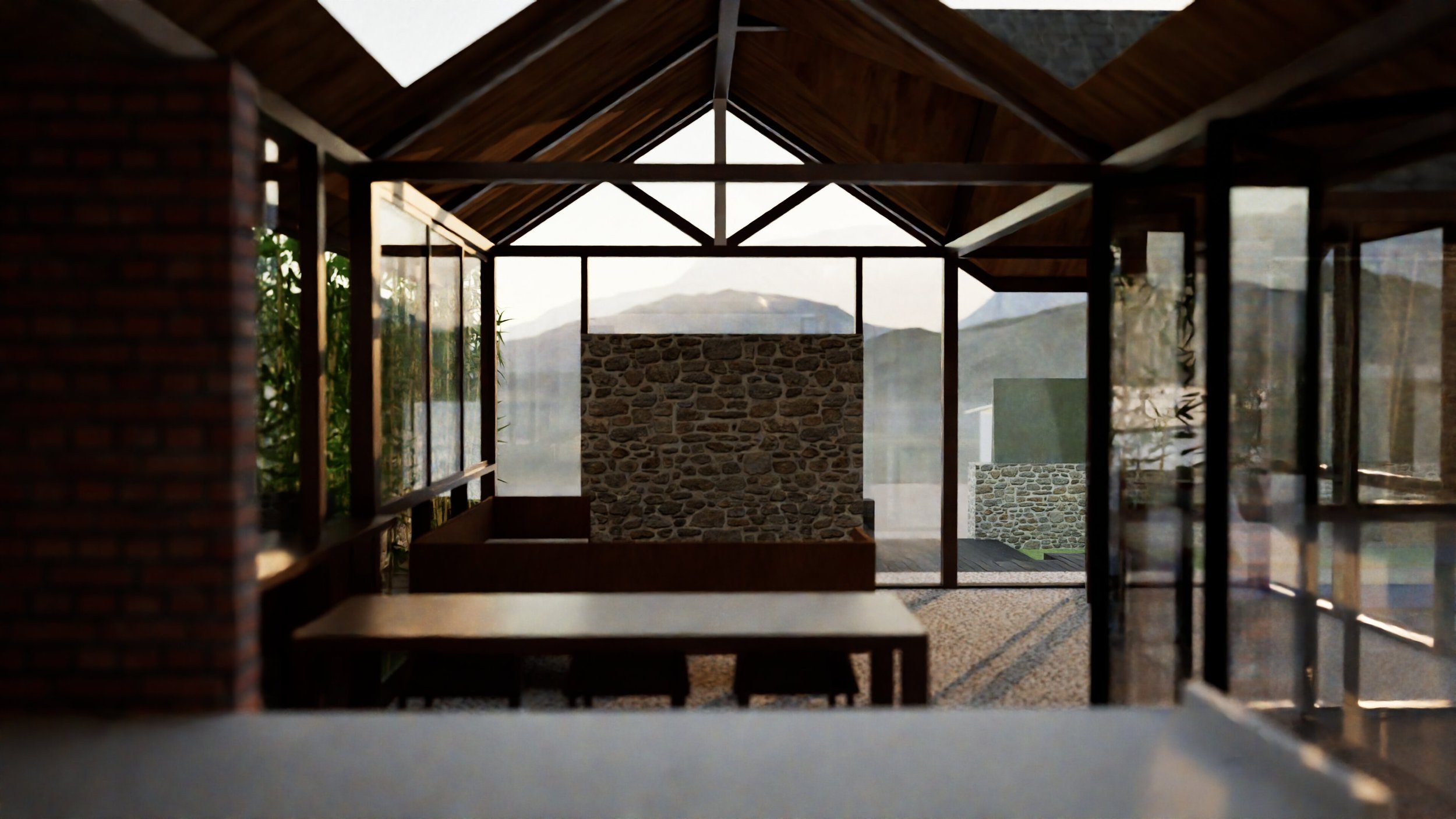 Situated on a 500-var plot near Rajkot, KWV is a weekend home crafted for a family of three, with ample space to host guests. This farmhouse brings together the raw textures of concrete, stone, glass, and wood, creating spaces that feel grounded yet effortlessly elegant.
