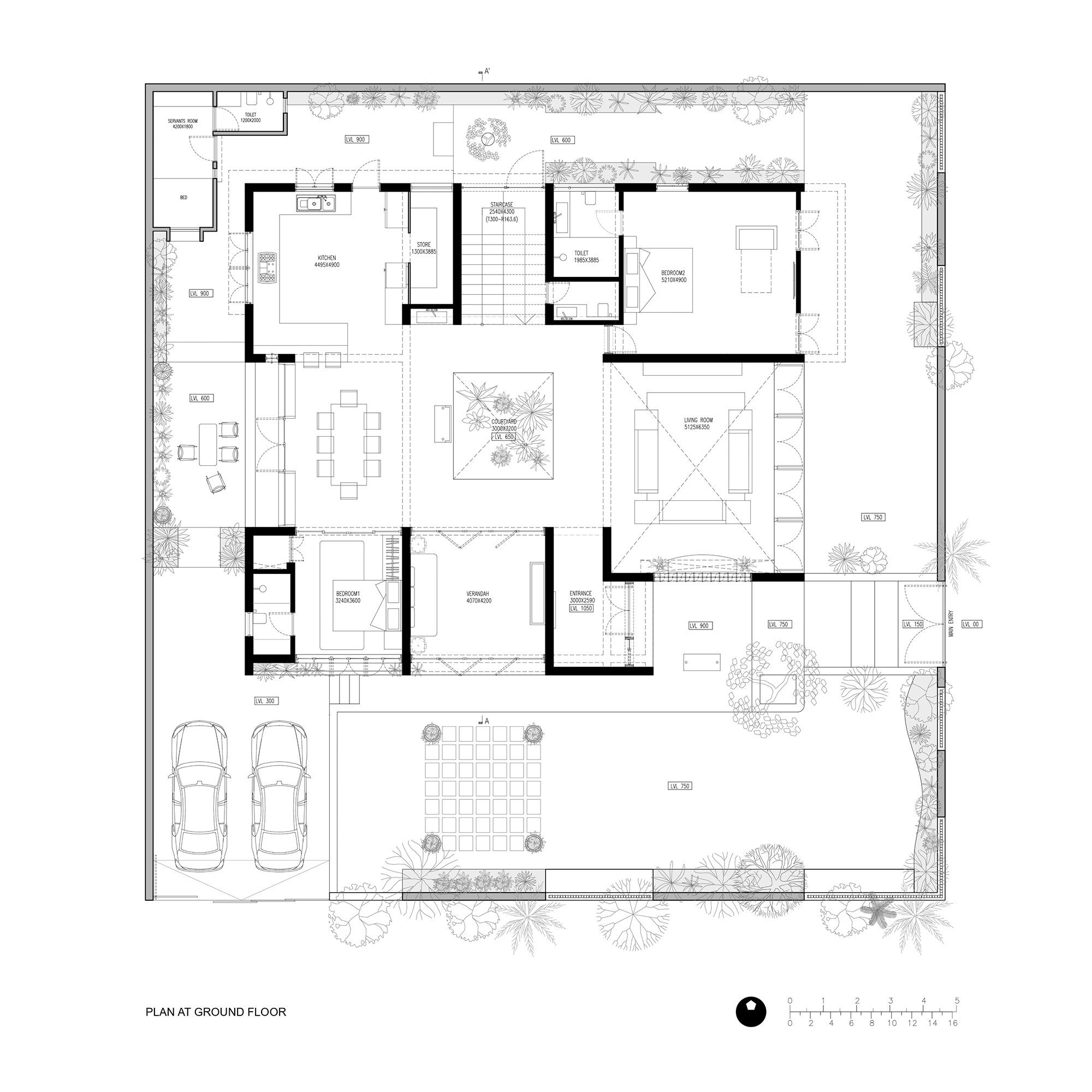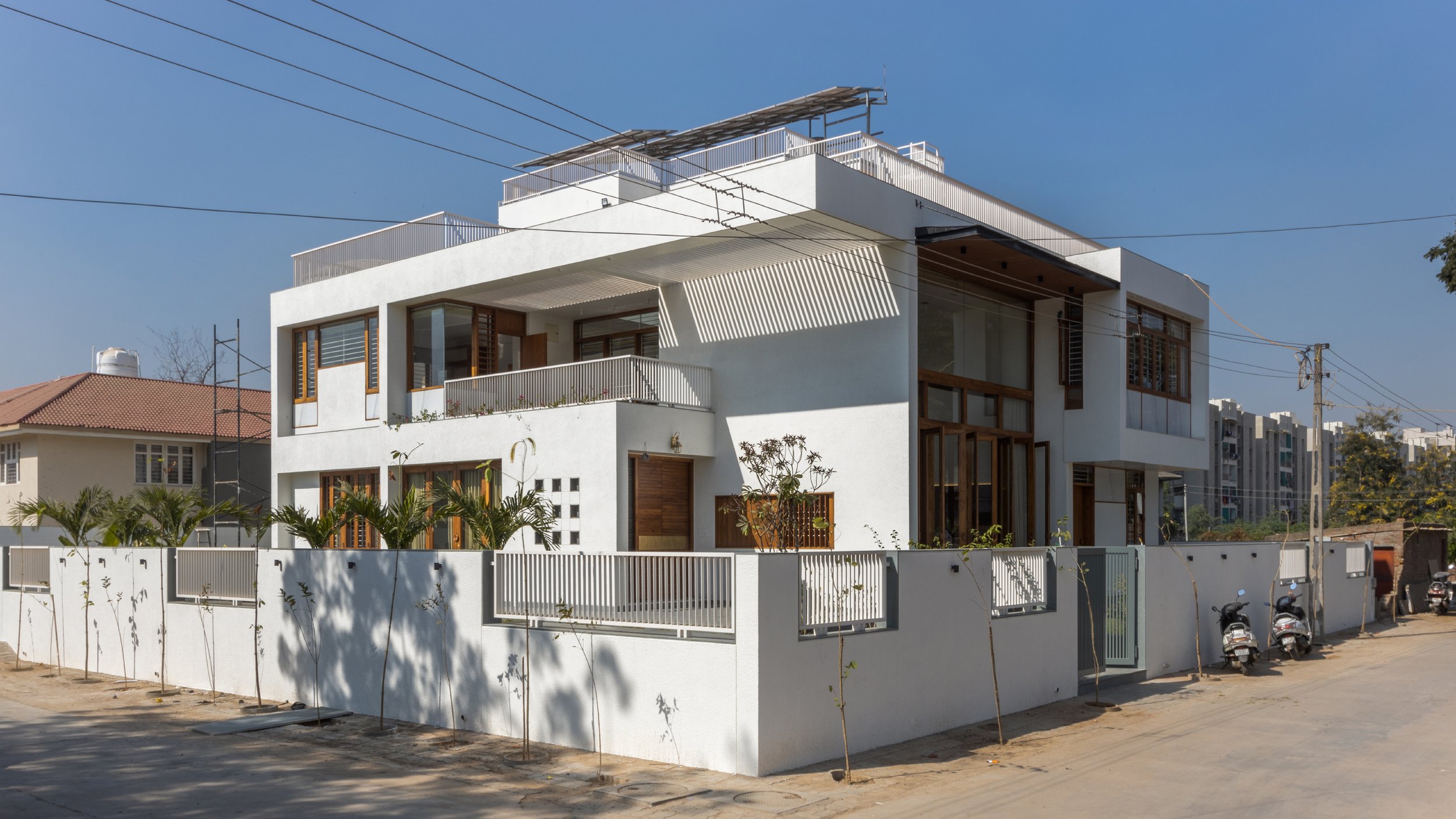 Nestling In Ahmedabad, Gujarat, HVR is a residence bungalow crafted in harmony with its user. Amidst Urban Surroundings, it is a peaceful corner plot in a gated residence society. The Initial Idea revolved around creating little barriers to allow daylight inside without losing the sense of warmth of a home. Drawing inspiration from the cultural richness of Gujarat, the design narrative is rooted in a cherished local saying, "ધરતી નો છેડો ઘર" meaning the earth ends at home, embodying a deep connection between humans and dwellings.